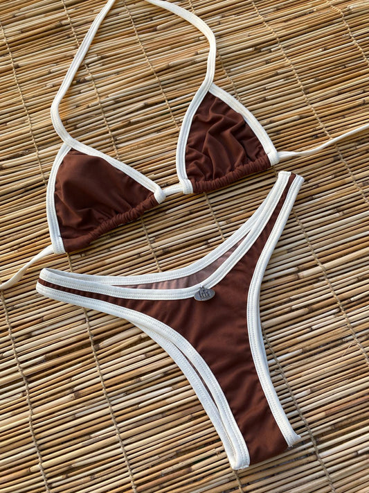 BROWN AND BEIJE THONG BIKINI - NO RETURN