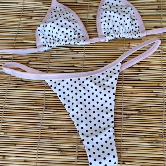BLACK AND WHITE POLK DOTS THONG BIKINI - NO RETURN
