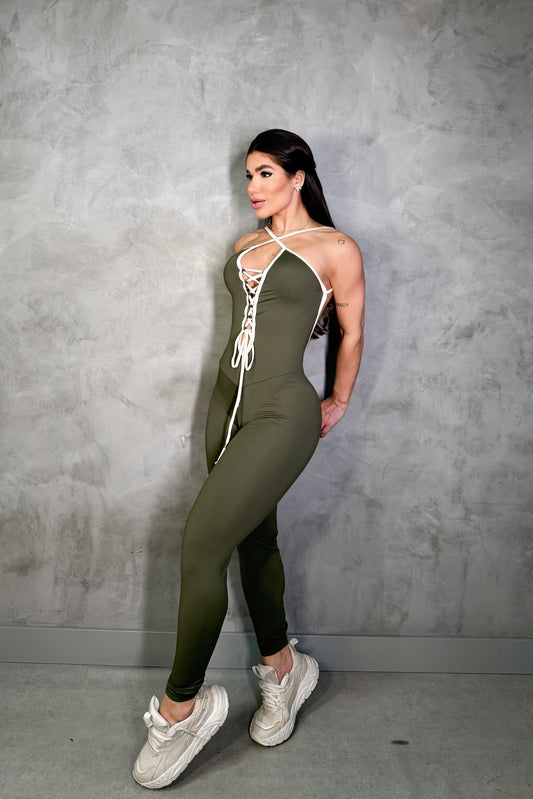 SCRUNCH BOOTY DARK GREEN AND BEIJE DETAIL JUMPSUIT