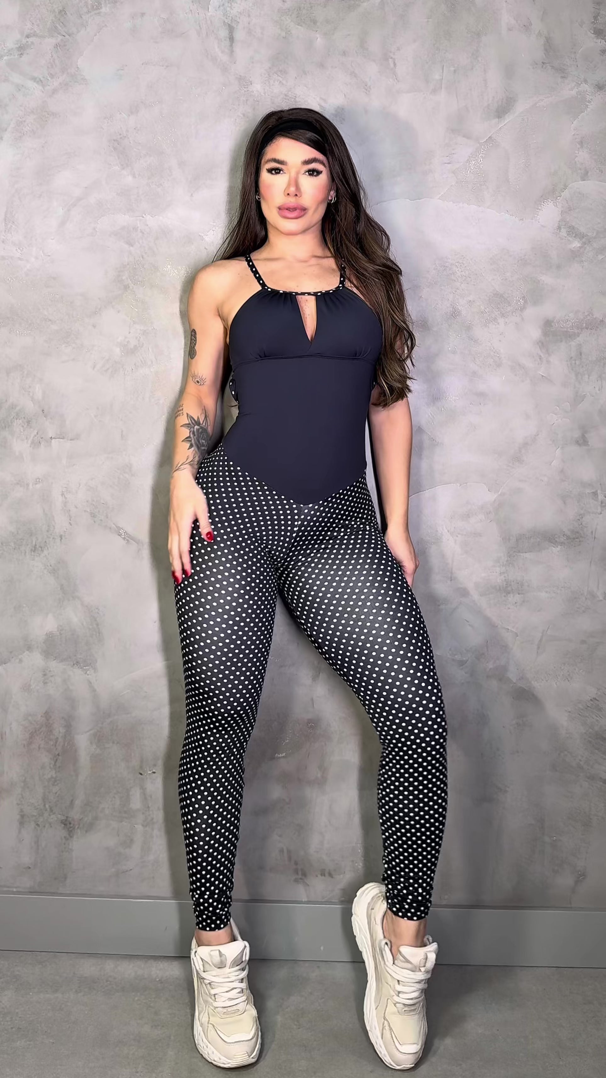 Make a striking impression with the Scrunch Booty Black and White Polk Dots Gorgeous Jumpsuit. Featuring a classic polka dot pattern and a flattering scrunch detail, this jumpsuit accentuates your curves while offering a chic, timeless look. Ideal for both casual outings and special occasions, it combines comfort and style effortlessly, ensuring you stand out with confidence wherever you go.