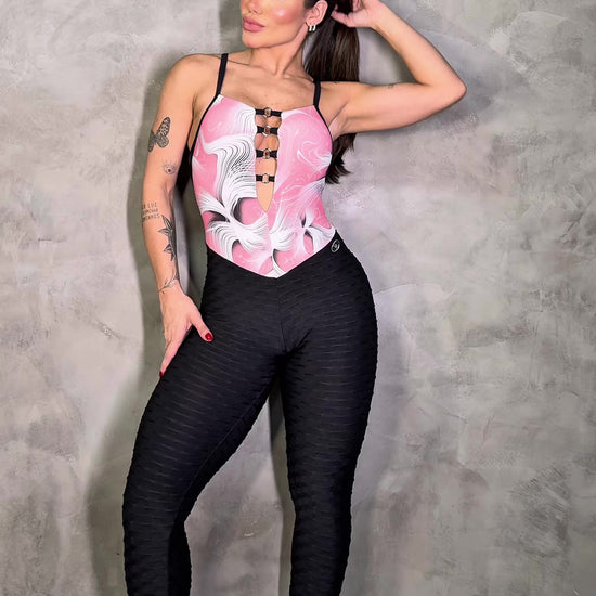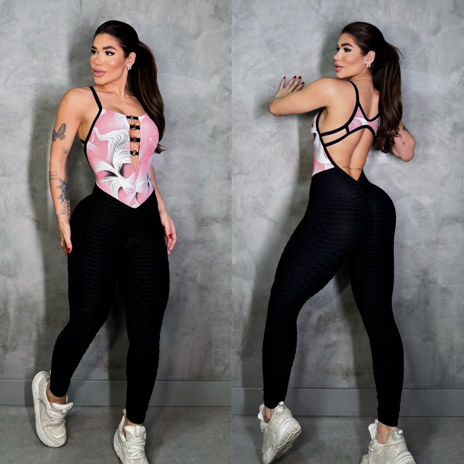 Elevate your style and comfort with the Scrunch Booty Black Wave and Pink Print Detail Jumpsuit. Designed to flatter, its scrunch detail enhances your silhouette while the bold black wave and pink print add a vibrant, eye-catching touch. Perfect for any occasion, this jumpsuit offers both a chic look and ease of movement, making it your go-to choice for effortless confidence.