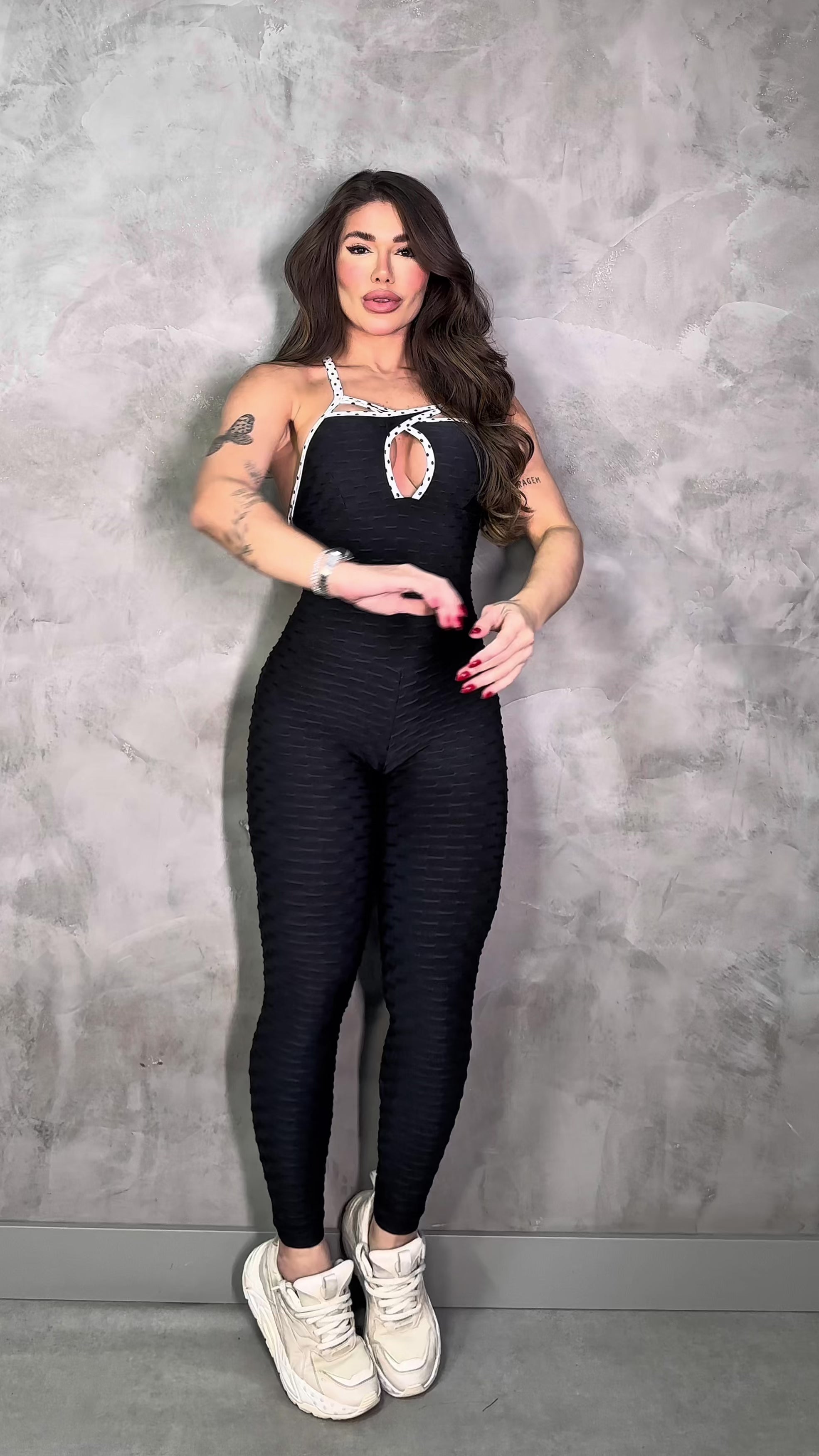 Elevate your look with the Scrunch Booty Black Wave and White Polka Dots Detail Jumpsuit. This stylish piece combines dynamic black wave patterns with classic white polka dots, creating a unique and eye-catching design. The scrunch booty feature enhances your natural curves, offering a flattering fit that boosts confidence. Perfect for making a bold statement while enjoying comfort, this jumpsuit is your go-to for standout style and effortless elegance.
