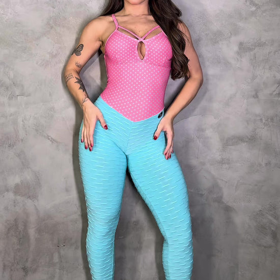 Make a vibrant statement with the Scrunch Booty Blue Wave and Pink Polk Dots Jumpsuit. This eye-catching design blends dynamic blue wave patterns with playful pink polka dots, creating a unique and stylish look. The scrunch detail enhances your curves, offering a flattering fit that boosts confidence. Perfect for turning heads at any occasion, this jumpsuit combines bold fashion with comfortable wear.