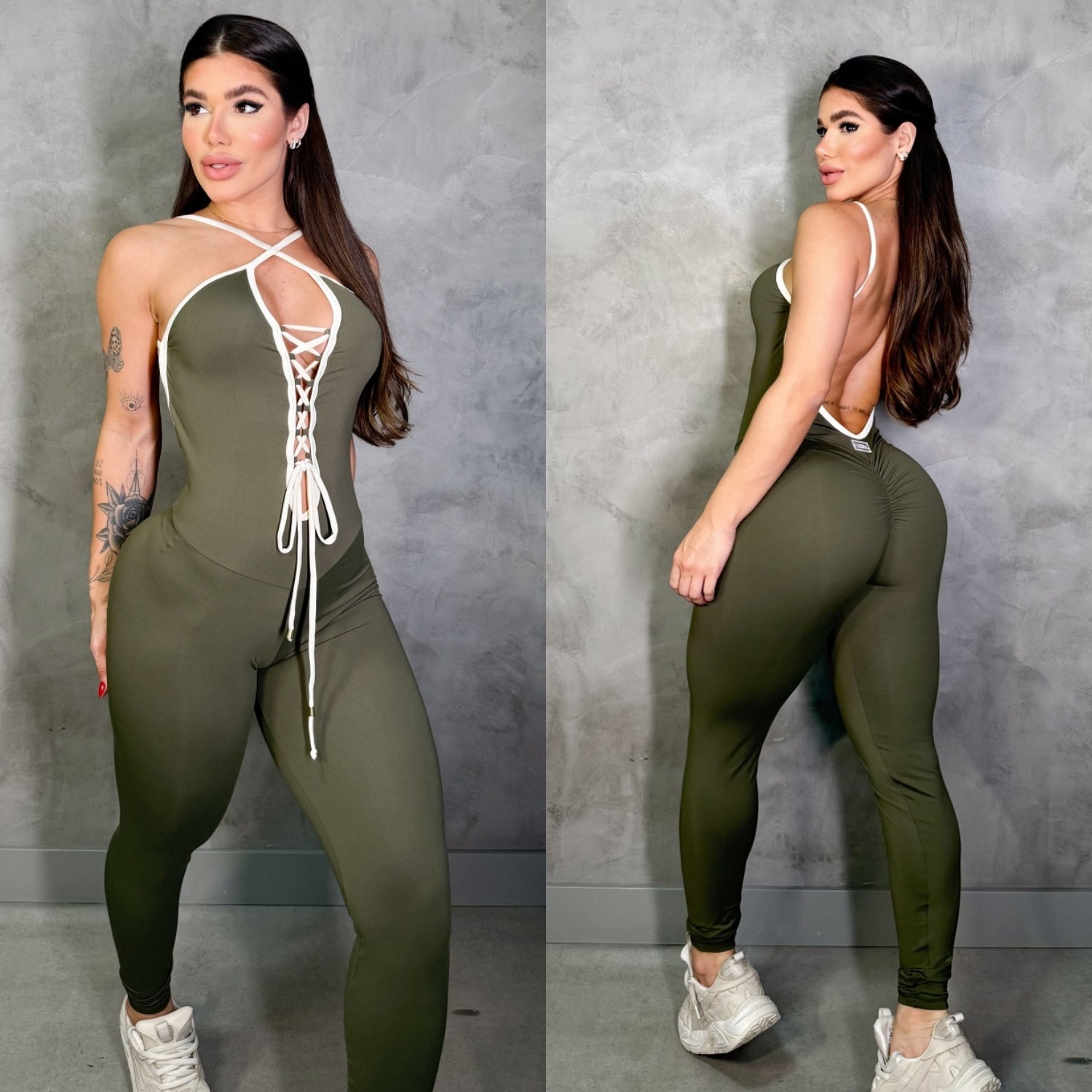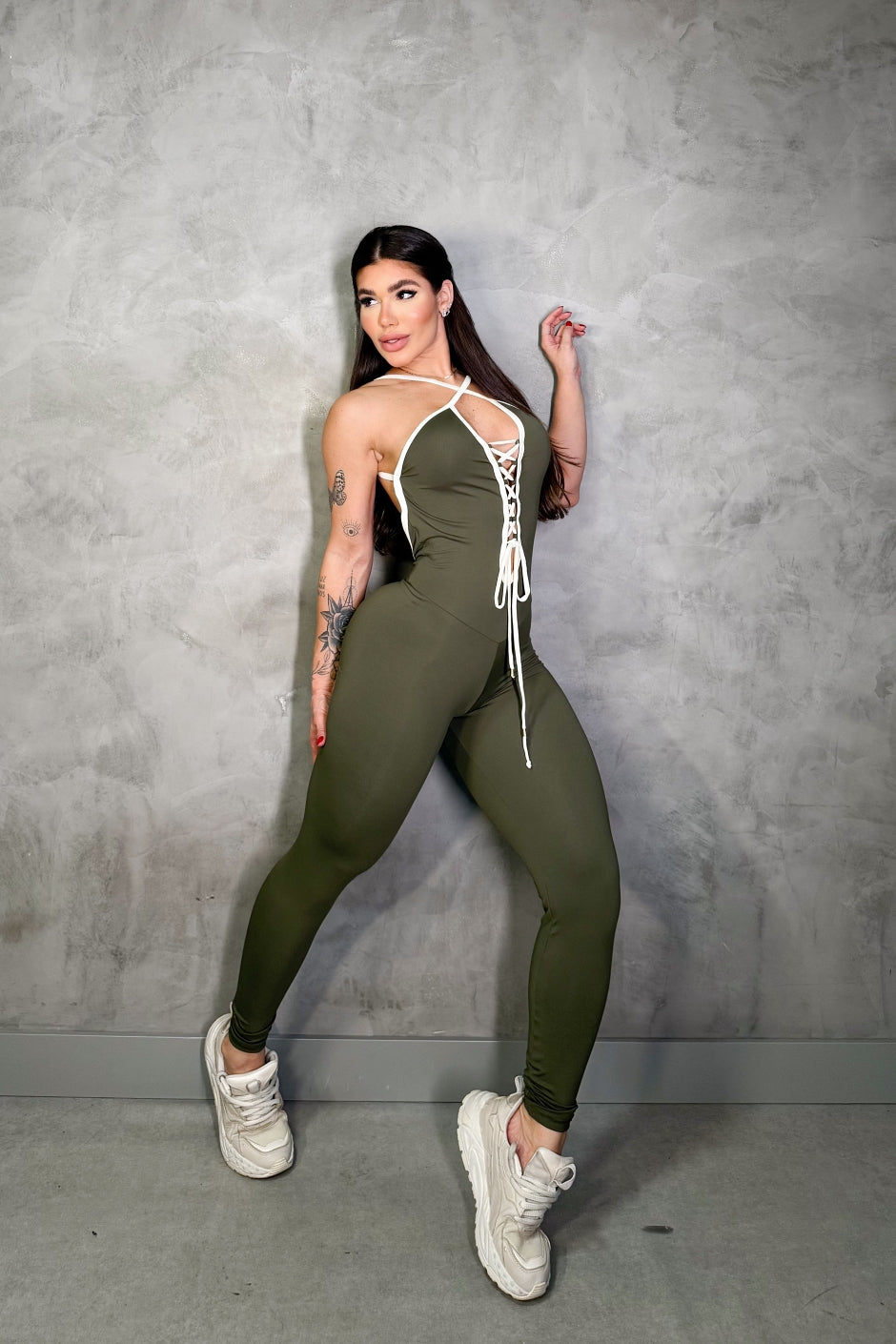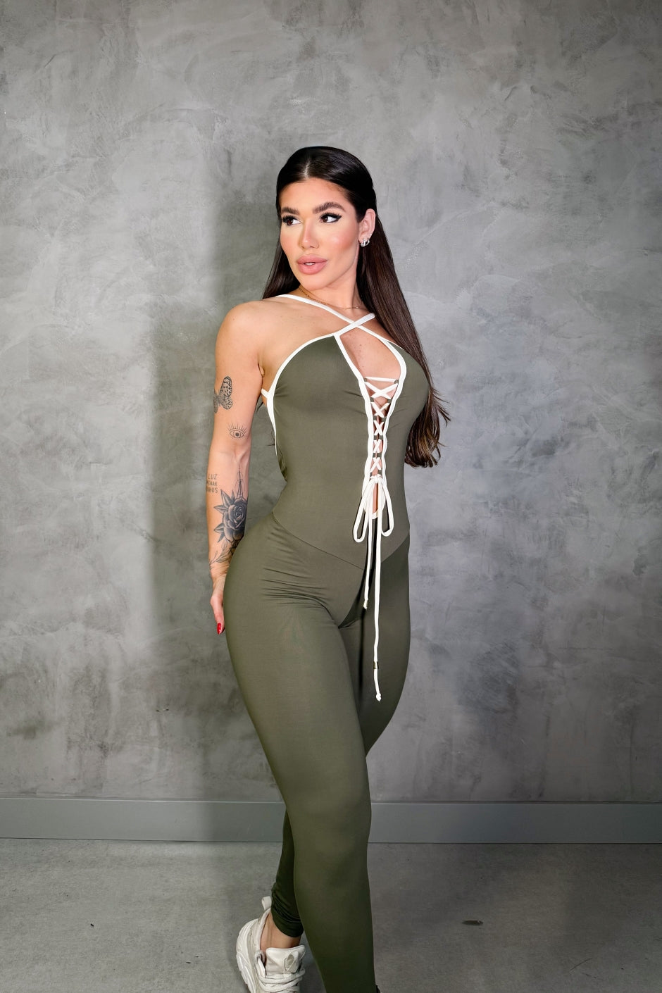 The Scrunch Booty Dark Green and Beige Detail Jumpsuit offers a perfect blend of style and sophistication. Its scrunch design enhances your curves, while the rich dark green color paired with subtle beige accents creates a chic, eye-catching look. Ideal for making a confident statement, this jumpsuit combines comfort and elegance for any occasion.