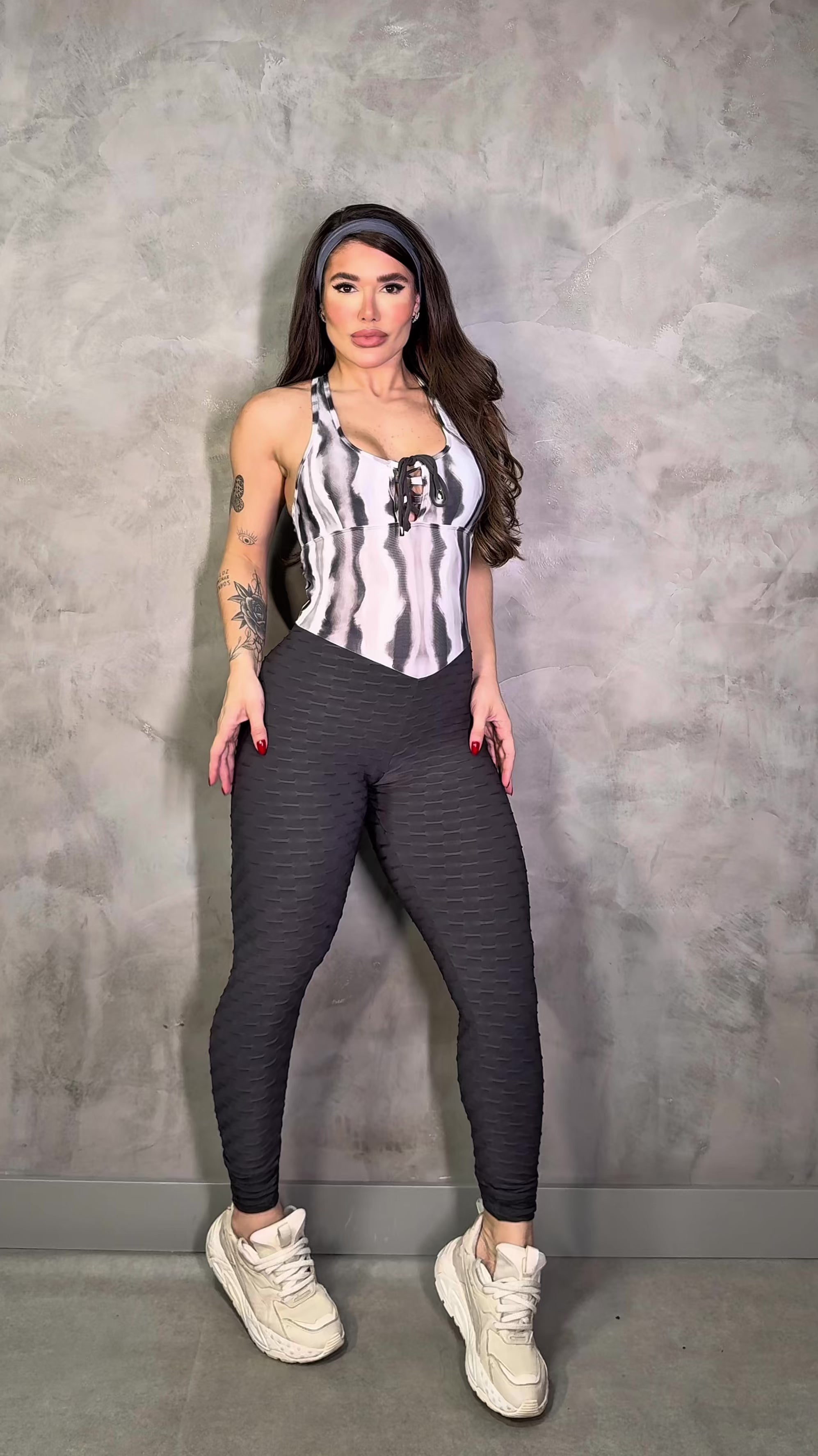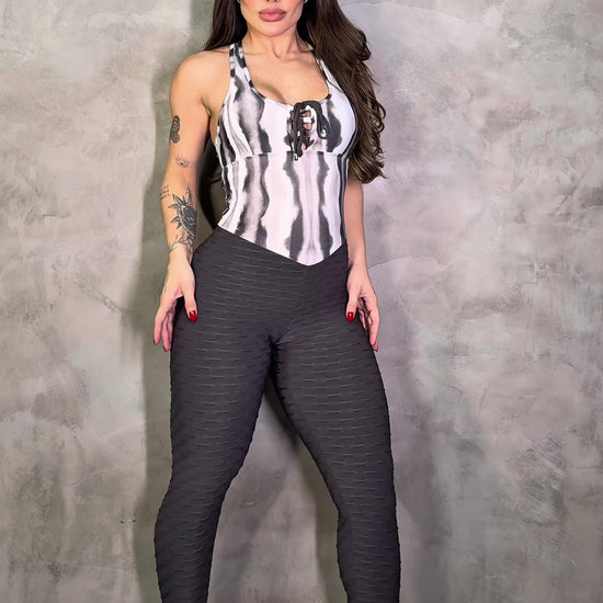 Discover the perfect blend of style and elegance with the Scrunch Booty Gray and Print Lace Detail Jumpsuit. Featuring a sophisticated gray print complemented by delicate lace accents, this jumpsuit enhances your curves with a flattering scrunch design. Enjoy exceptional comfort and confidence whether you're working out or heading out, all while making a chic statement.