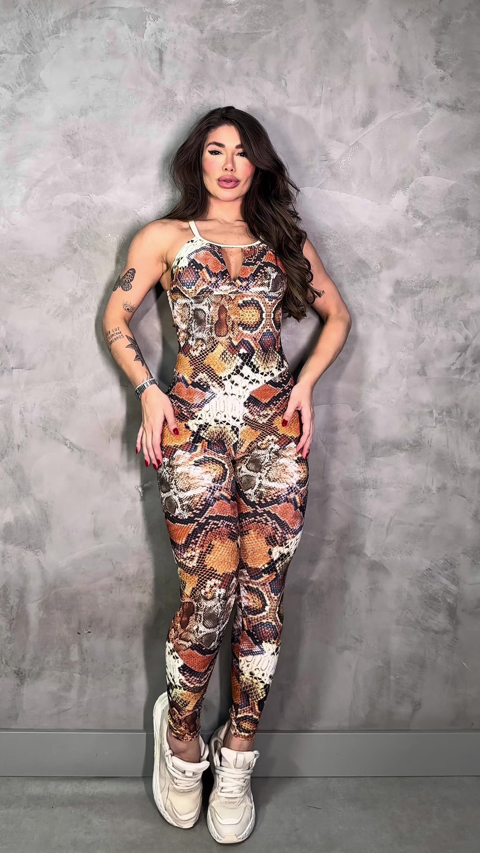 Make a bold statement with the Scrunch Booty Orange Snake Jumpsuit. Featuring a striking orange snake print and a flattering scrunch booty design, this jumpsuit accentuates your curves while delivering vibrant style. Perfect for both active days and casual outings, it offers comfort without compromising on eye-catching appeal. Stand out confidently and embrace your unique look with this dynamic, fashion-forward piece.