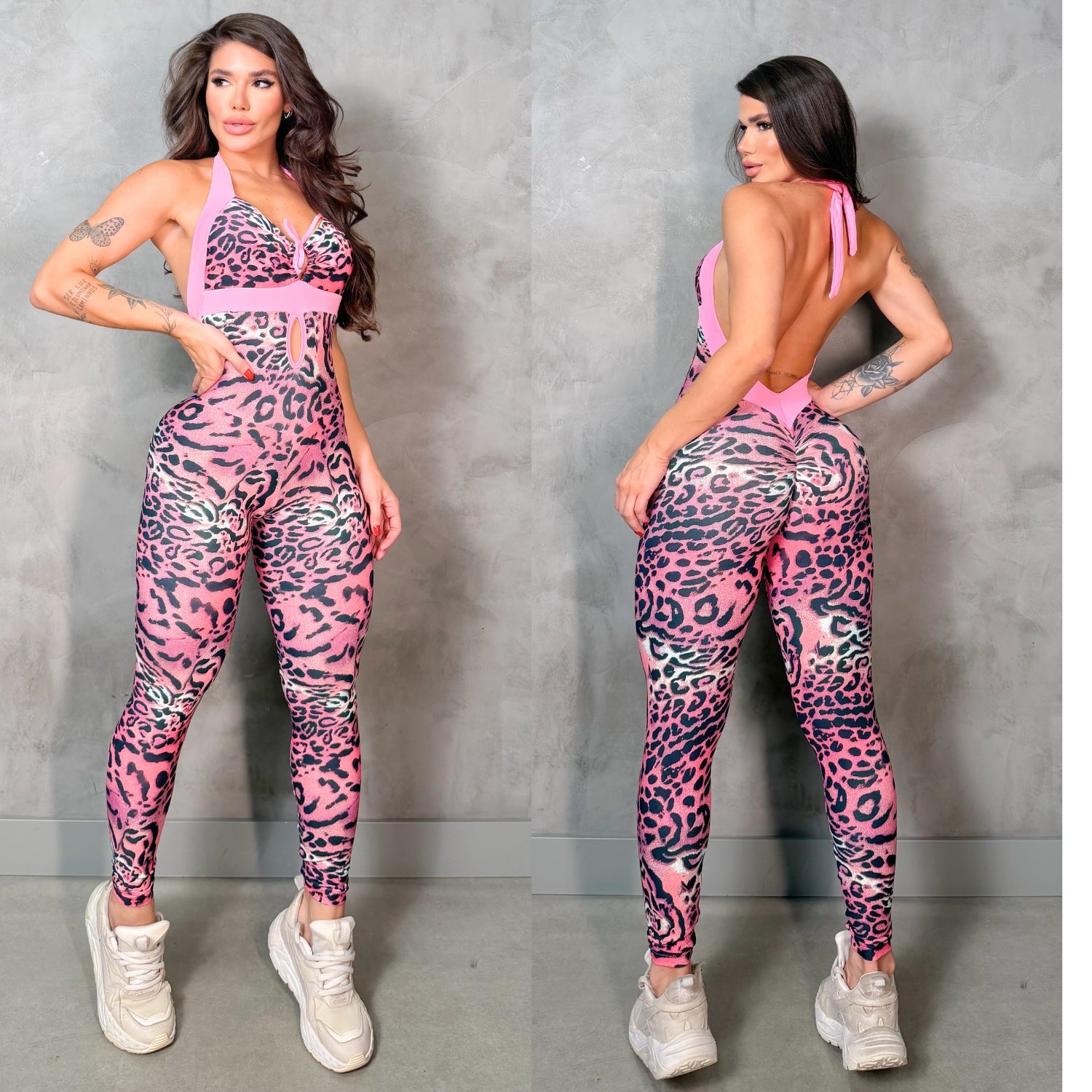 SCRUNCH BOOTY PINK LEOPARD SEXY BACK JUMPSUIT, NO RETURN