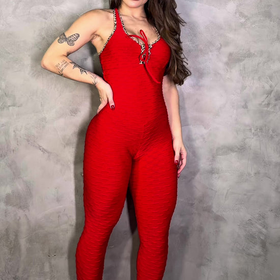 SCRUNCH BOOTY RED AND LEOPARD WAVE JUMPSUIT