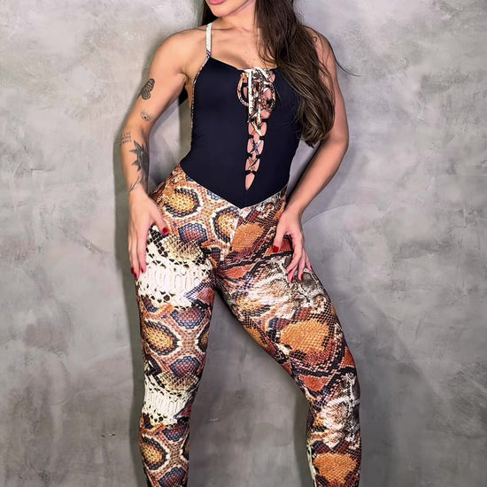 Turn heads with the Scrunch Booty Snake and Black Detail Jumpsuit. This bold design combines edgy snake print with sleek black accents, creating a striking contrast that highlights your curves. The scrunch detail enhances your silhouette, offering a confident and stylish look perfect for any occasion where you want to stand out. Comfortable and fashion-forward, this jumpsuit is a must-have for your wardrobe.